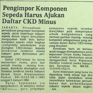 Pengimpor Komponen Sepeda Harus Ajukan Daftar CKD Minus