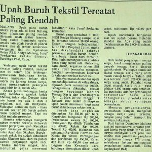 Upah Buruh Tekstil Tercatat Paling Rendah