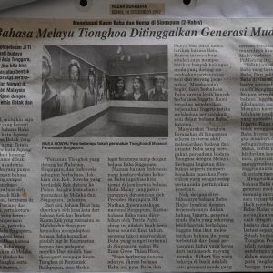 Menelusuri Kaum Baba dan Nonya di Singapura (2- Habis): Bahasa Melayu Tionghoa Ditinggalkan Generasi Muda