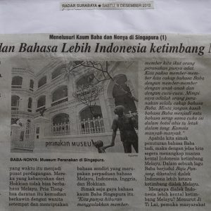 Menelusuri Kaum Baba dan Nonya di Singapura (1): Adat dan Bahasa Lebih Indonesia ketimbang Melayu