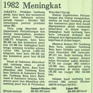Produksi Tambang Bulan Januari-Oktober 1982 Meningkat